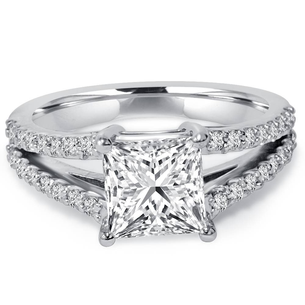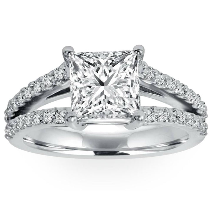 1 1/3Ct Princess Cut Split Shank Enhanced Diamond Engagement Ring 14K White Gold