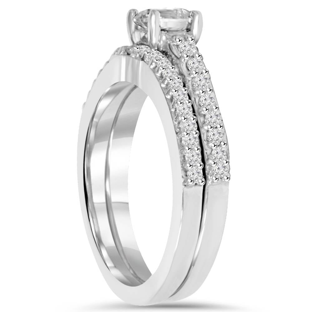 1ct Pave Diamond Engagement Wedding Matching Ring Set 14K White Gold Round Cut