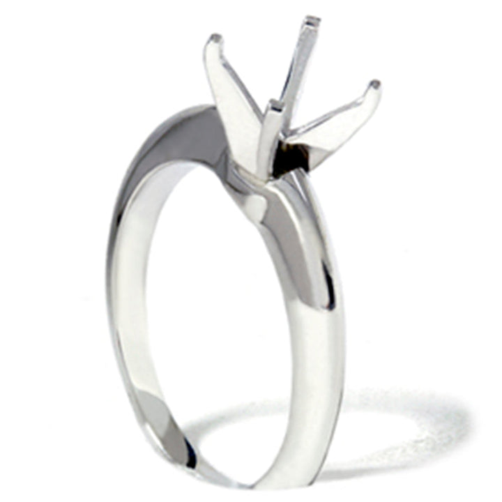 Made in solid 14k white gold, designed to fit round or princess cut stones up to 1 carat. Larger shapes and sizes available upon request.