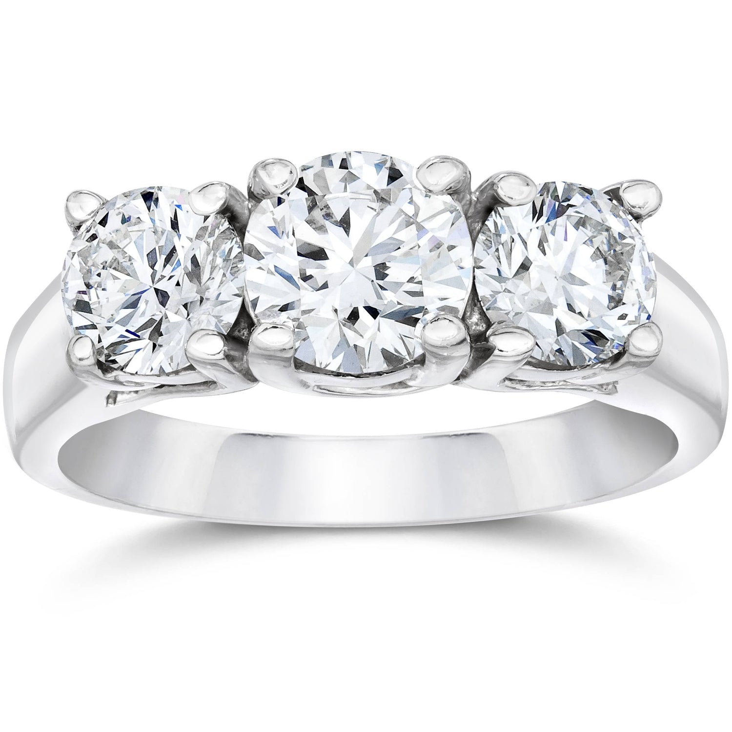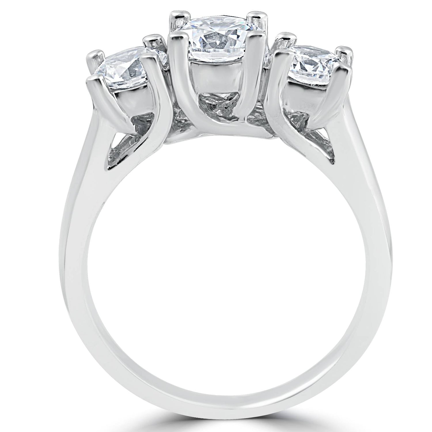 2 CT Three Stone Diamond Engagement Ring 14k White Gold