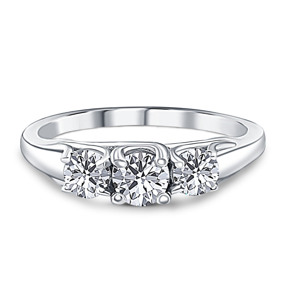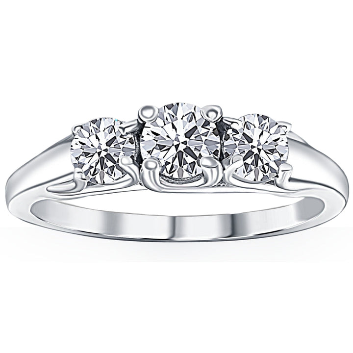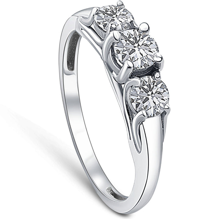 This 1ct Three Stone Diamond Ring by Pompeii3 features two 1/3ct diamonds and a 3/8ct center stone, all prong-set in solid 14k white gold. The ring’s elegant design symbolizes the past, present, and future, making it an ideal choice for engagements or anniversaries. The diamonds’ brilliant sparkle is sure to capture attention and complement any outfit.