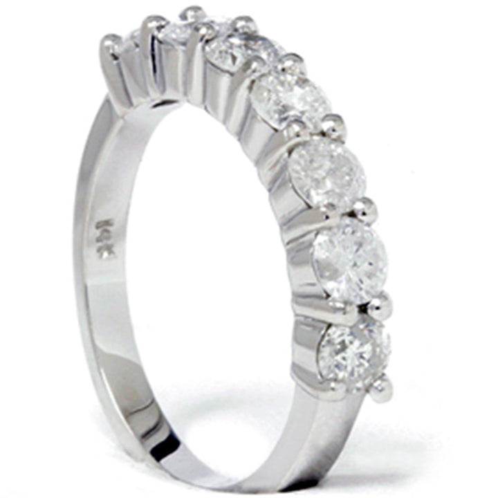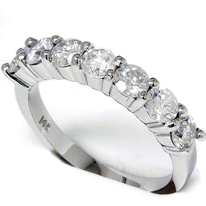 This 2 1/10Ct Diamond Wedding Ring Women's Anniversary Band by Pompeii3 is bold and brilliant. Featuring seven large round diamonds prong set for maximum sparkle, this ring is an enduring statement of love and a remarkable anniversary gift.