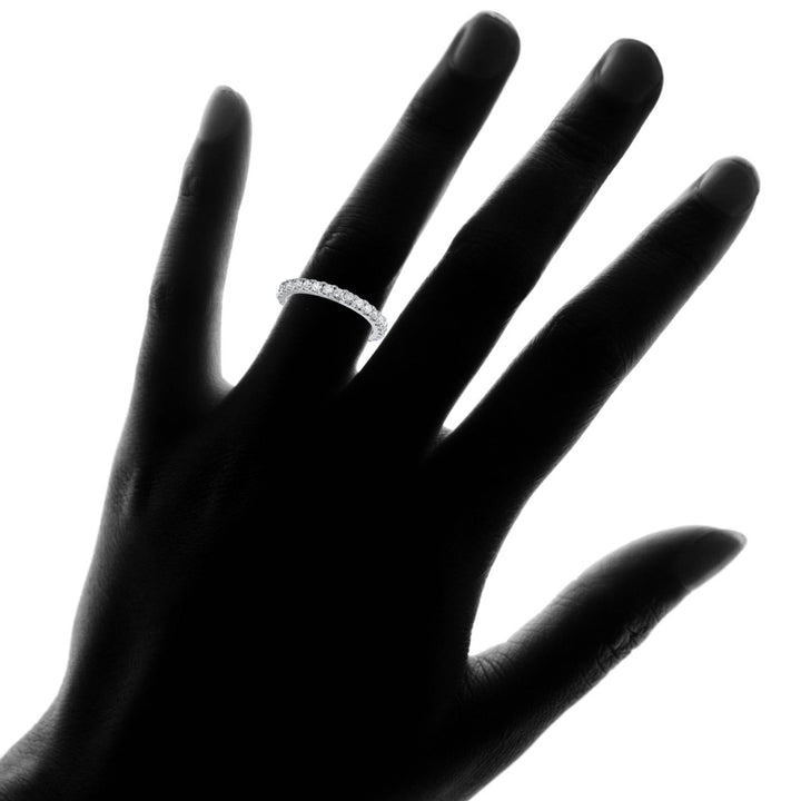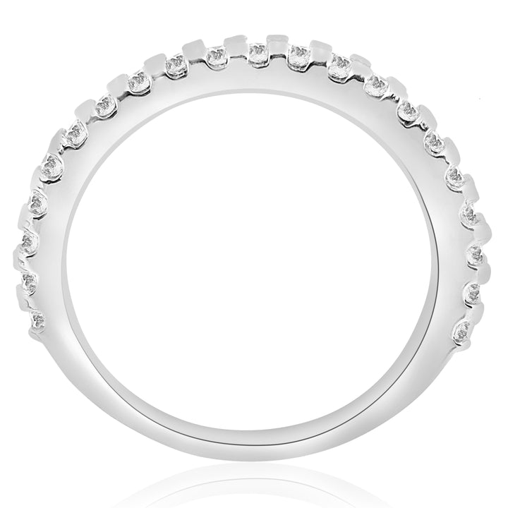 This 1ct Diamond Wedding Ring by Pompeii3 is a graceful and versatile piece perfect for celebrating love. Set with 21 shimmering round diamonds, this elegant band can be stacked, worn alone, or paired with other rings for a chic, sparkling statement.