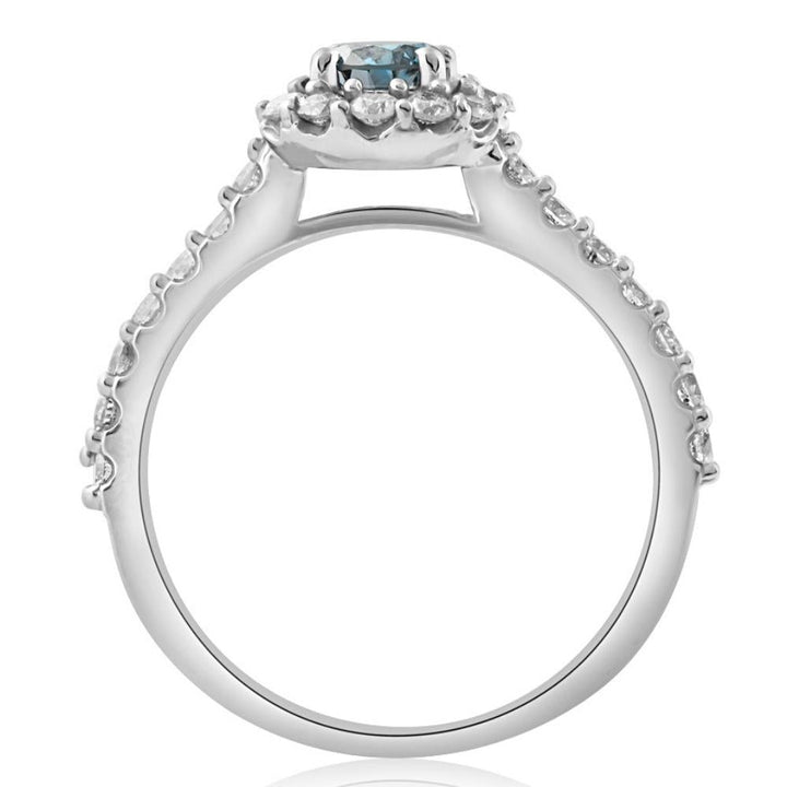 1 3/8 ct Blue Diamond Halo Engagement Ring 14K White Gold