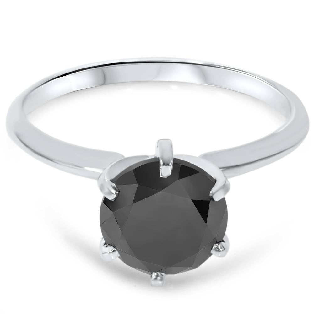 2 ct 14K White Gold Black Diamond Solitaire Engagement Ring