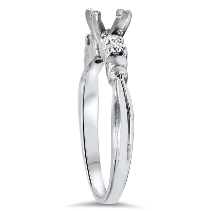 This 3/4ct Prong Diamond Ring Set by Pompeii3 offers timeless sophistication. With nine round brilliant cut natural diamonds prong-set in white gold, this wedding set is both classic and customizable for your perfect center stone.