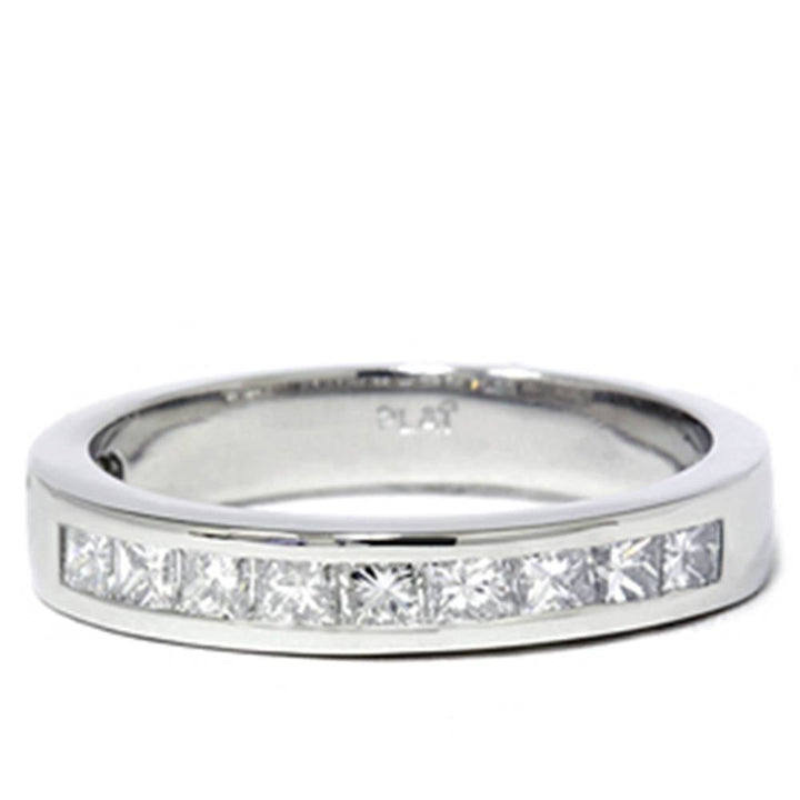 This 950 Platinum 5/8ct Princess Cut Diamond Wedding Ring by Pompeii3 is a timeless symbol of commitment, featuring nine princess square cut diamonds channel set in polished platinum.