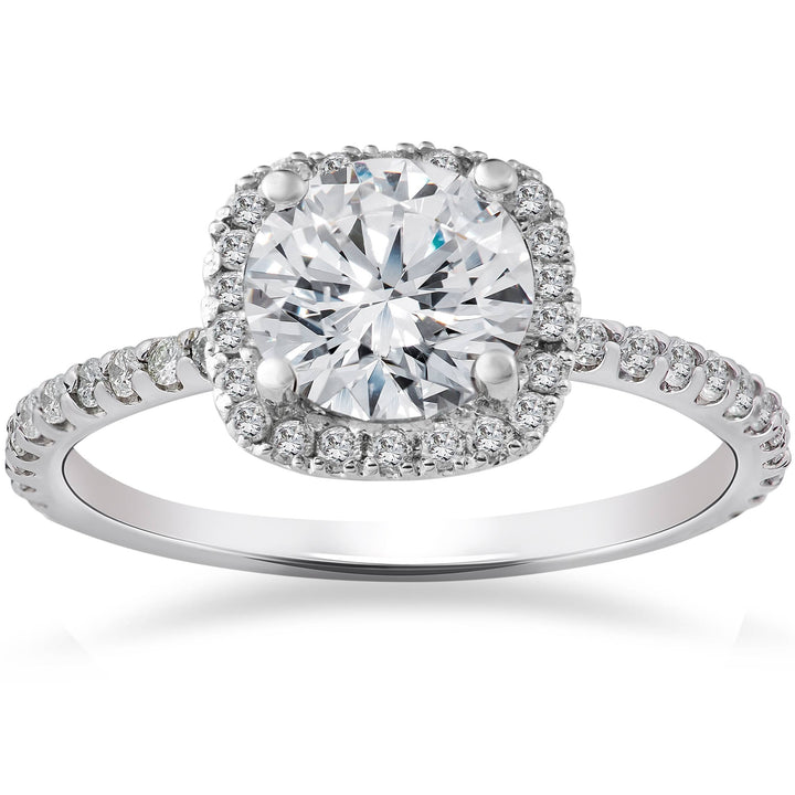 2 Carat Cushion Halo Diamond Engagement Ring 14K White Gold