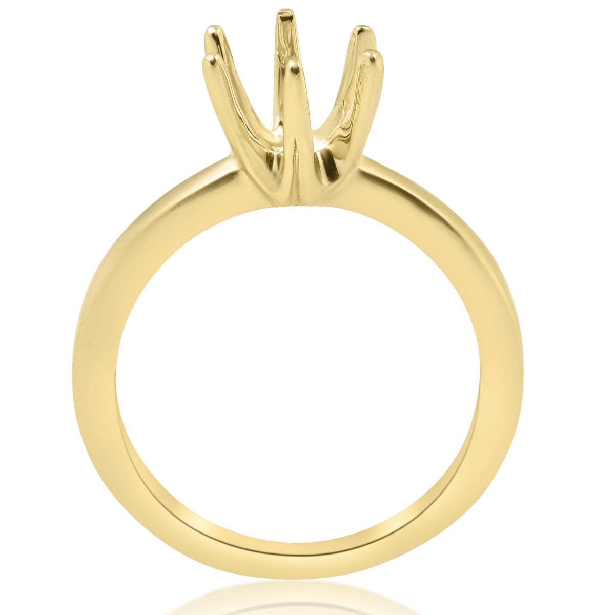 Crafted in solid 14k yellow gold with six-prong solitaire setting. Holds up to a 1ct round stone. Made in the USA.