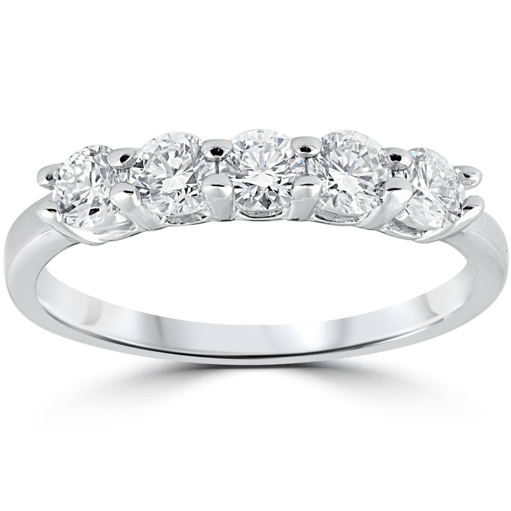 1/2 CT Diamond Five Stone Wedding Ring 14K White Gold