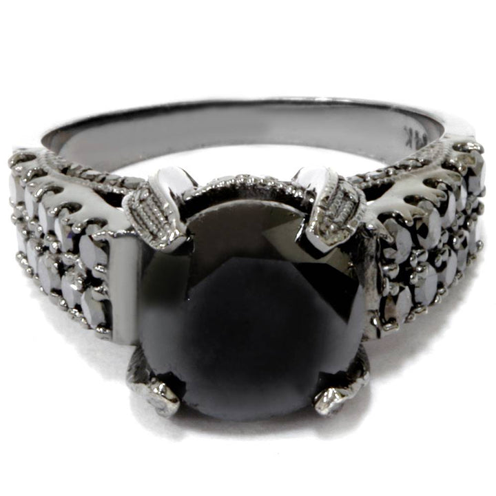 5 1/4ct Black Diamond Engagement Ring 14K Black Gold