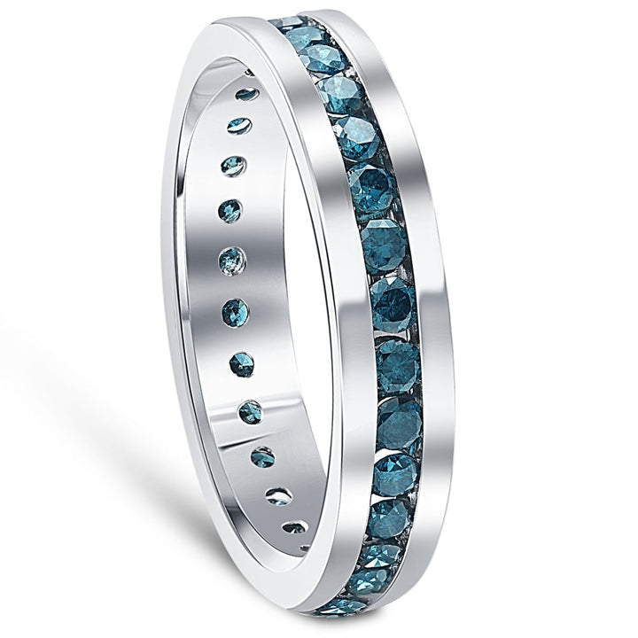 1 1/5ct Blue Diamond Channel Set Eternity Ring 14K White Gold Comfort Fit