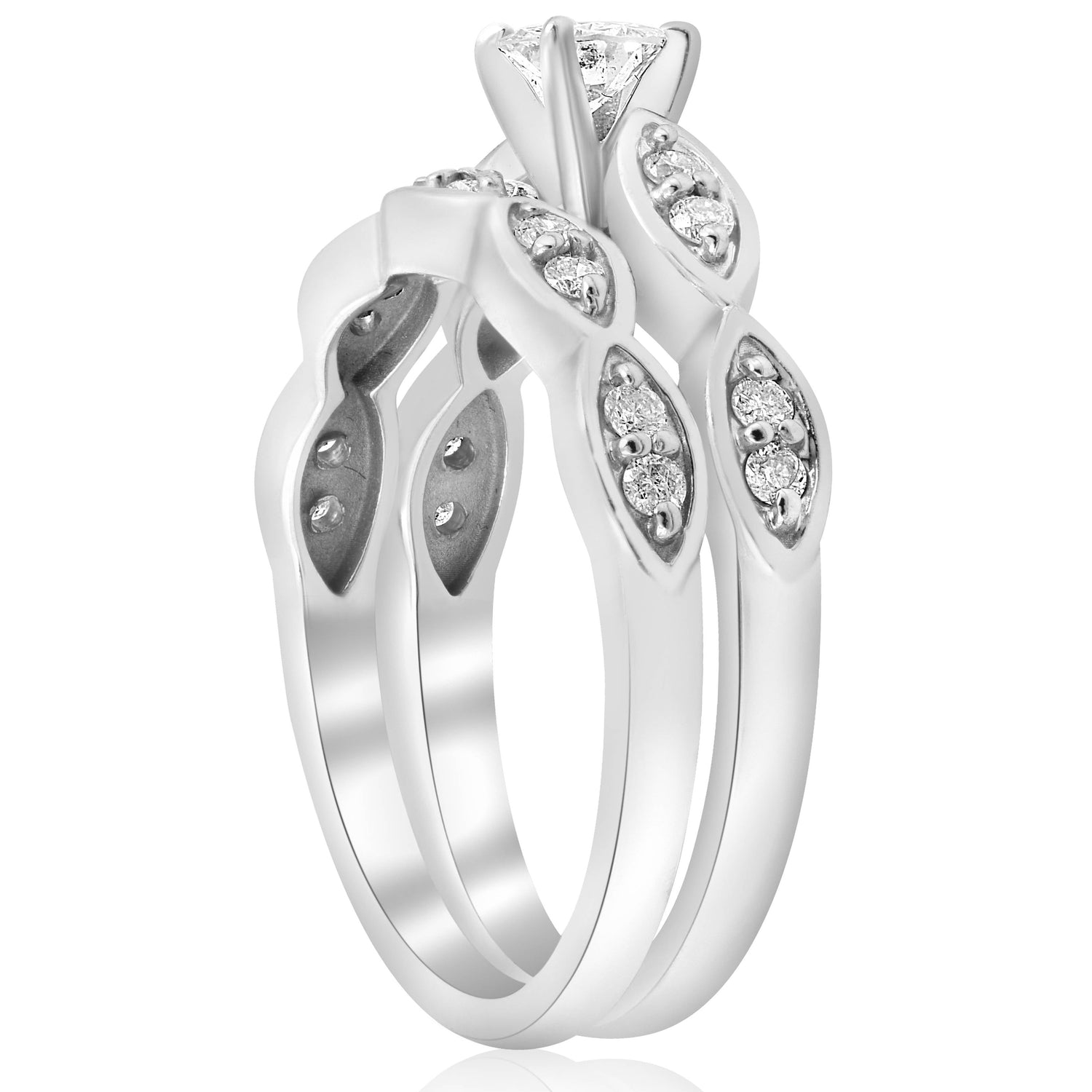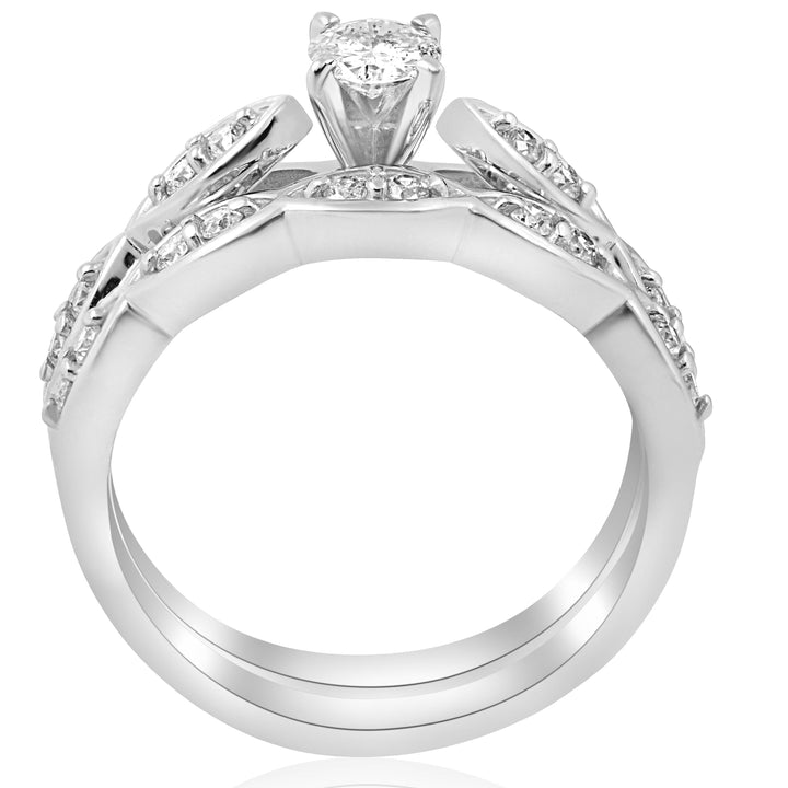 3/4ct Vintage Diamond Engagement Wedding Ring Set 14K White Gold