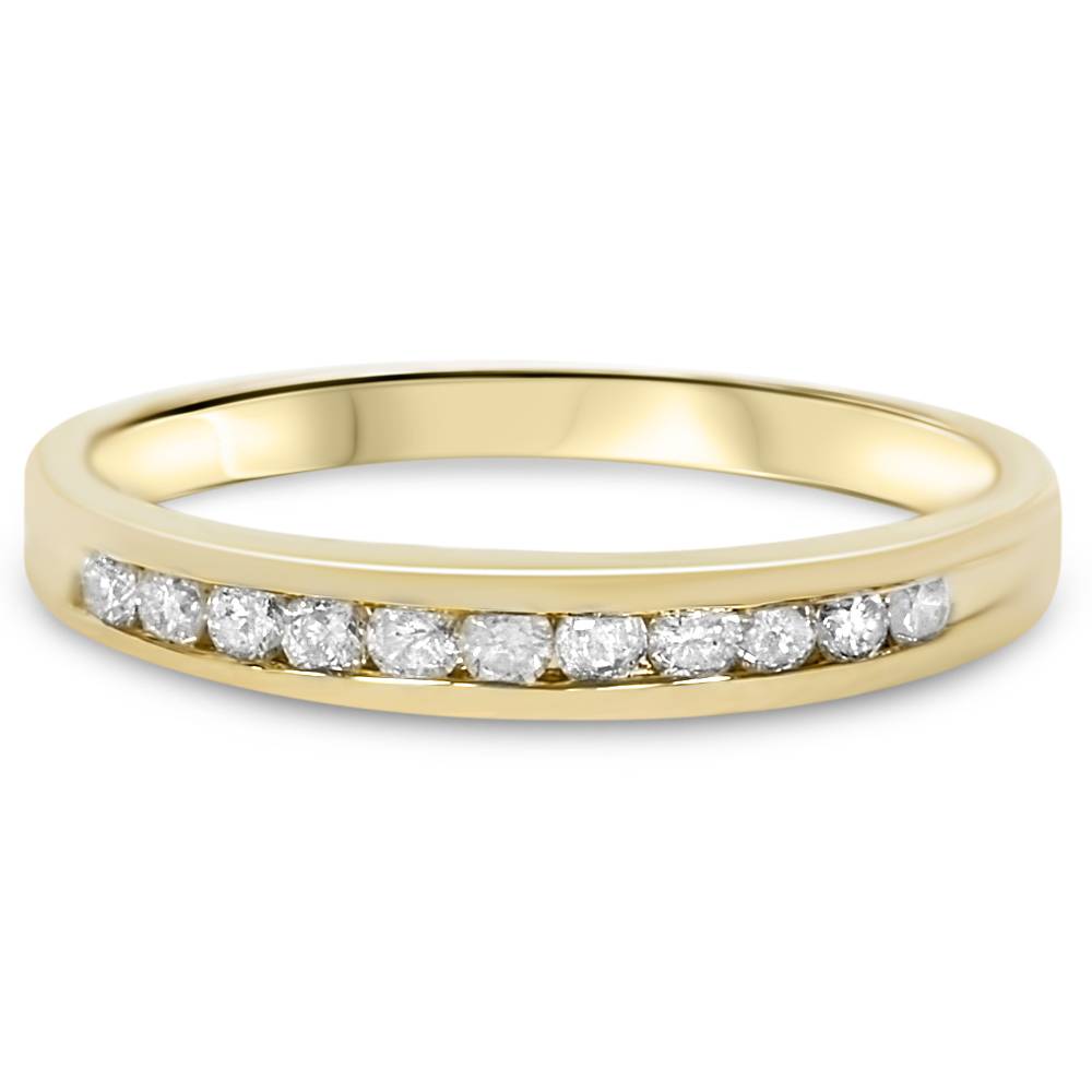 Made in 14k yellow gold with 1/4ct of round brilliant cut natural diamonds (G-H color, I2 clarity) in a channel setting.