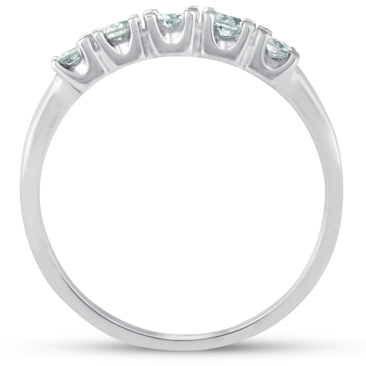 Crafted in solid 10k white gold with five round brilliant cut natural diamonds totaling 1/4 carat, all prong set.