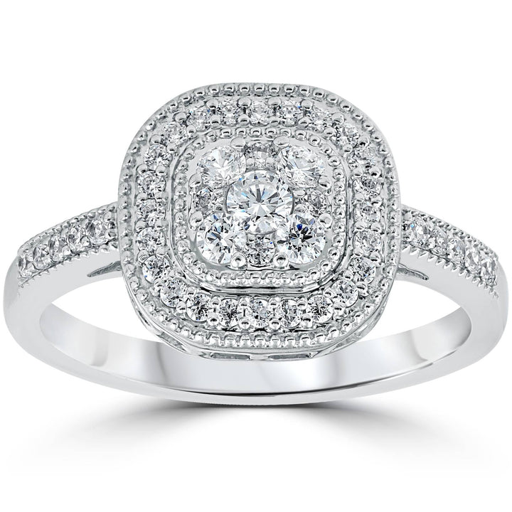 3/8 ct Vintage Natural Diamond Cushion Halo Shaped Ring White Gold