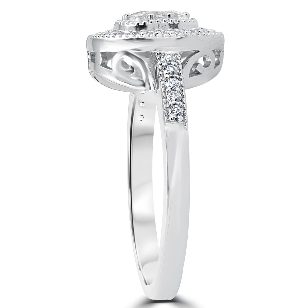 Handcrafted in solid 10k white gold with round-cut natural diamonds totaling 0.26–0.50 ct. Diamond clarity I2-I3, color H-I.