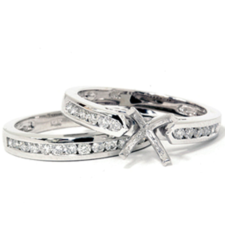 These 1/2Ct Cathedral Diamond Channel Set Rings by Pompeii3 blend classic bridal design with enduring sparkle. Twenty-two brilliant diamonds are channel-set in polished white gold, making this bridal set a timeless symbol of commitment and elegance. Customizable for various center stone shapes and sizes.
