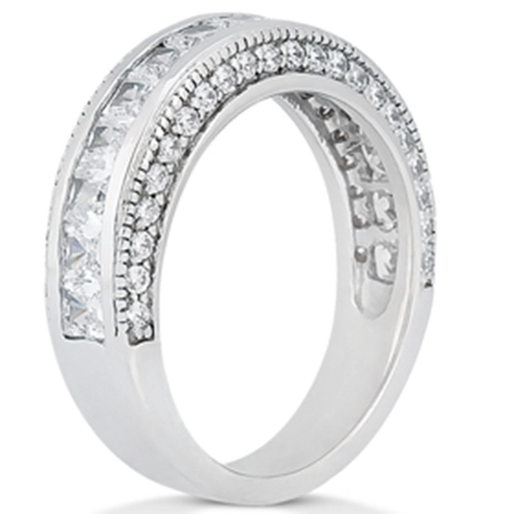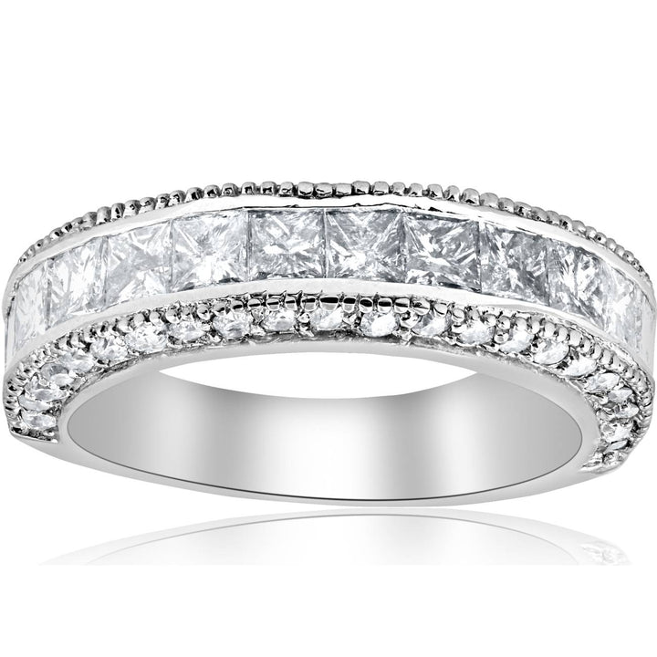 This 2 3/4ct Princess Cut Vintage Diamond Wedding Ring by Pompeii3 is a statement of timeless grandeur, combining antique filigree styling with an abundance of sparkling princess and round diamonds for unforgettable elegance.
