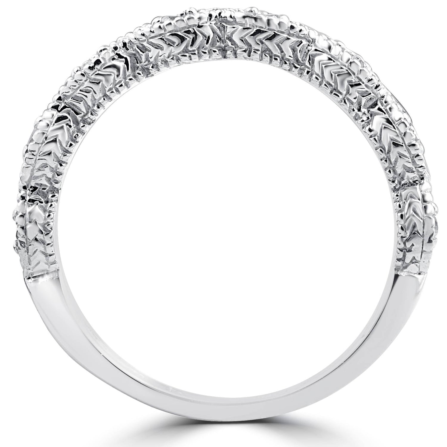 1/10 cttw Vintage Blue Diamond Wedding Ring 14K White Gold