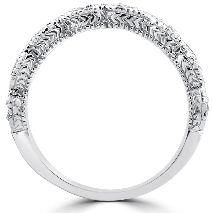This 1/10 cttw Vintage Blue Diamond Wedding Ring by Pompeii3 is a captivating piece with a unique twist. Featuring eight round blue color-enhanced diamonds set in solid 14K white gold, this ring exudes vintage charm and is perfect for those who appreciate the beauty of colored diamonds. It offers a striking and elegant alternative to traditional wedding bands.