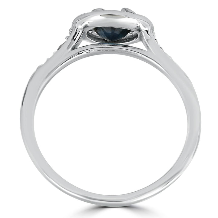 Crafted in solid 14k white gold featuring a 3/4ct genuine blue sapphire and accent diamonds. Diamond clarity: I2-I3; color: G-H.
