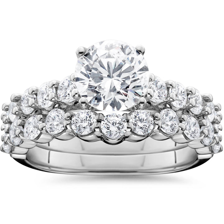2 1/15ct Diamond Engagement Ring With Matching Wedding Band 14K White Gold