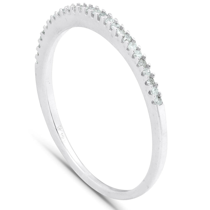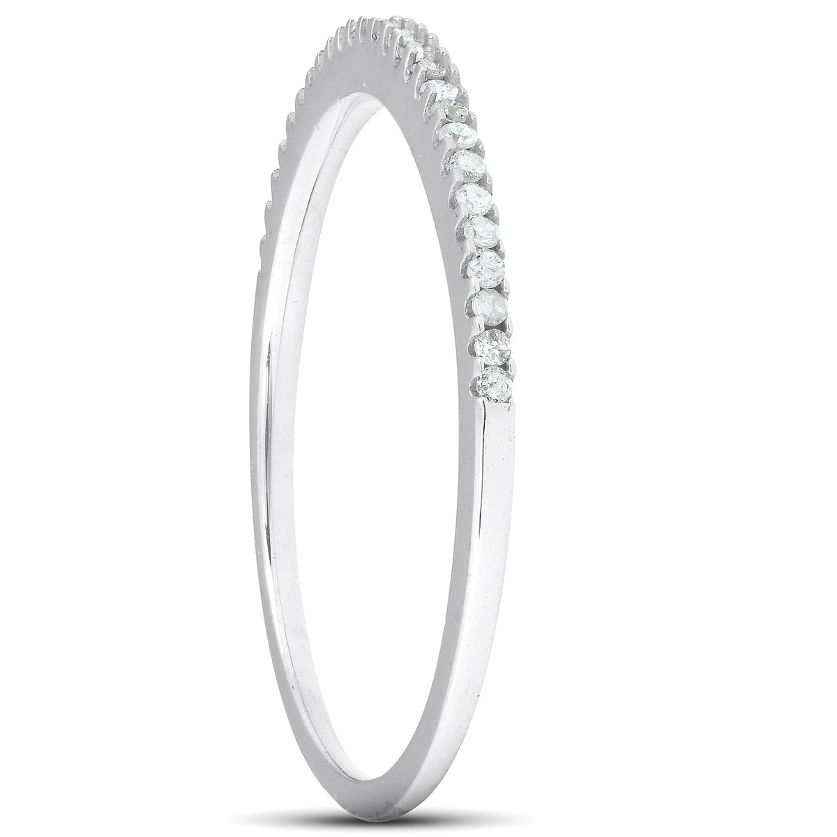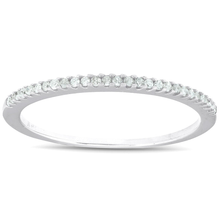 This 1/10ct Diamond Wedding Ring by Pompeii3 is a delicate and elegant choice, featuring 27 round-cut natural diamonds set in polished 10k white gold — perfect for stacking or wearing solo.