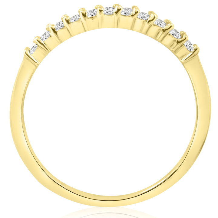 This 1/4ct Diamond Wedding Anniversary Ring Band by Pompeii3 is a timeless and elegant piece that celebrates lasting love, featuring perfectly set diamonds in warm yellow gold.