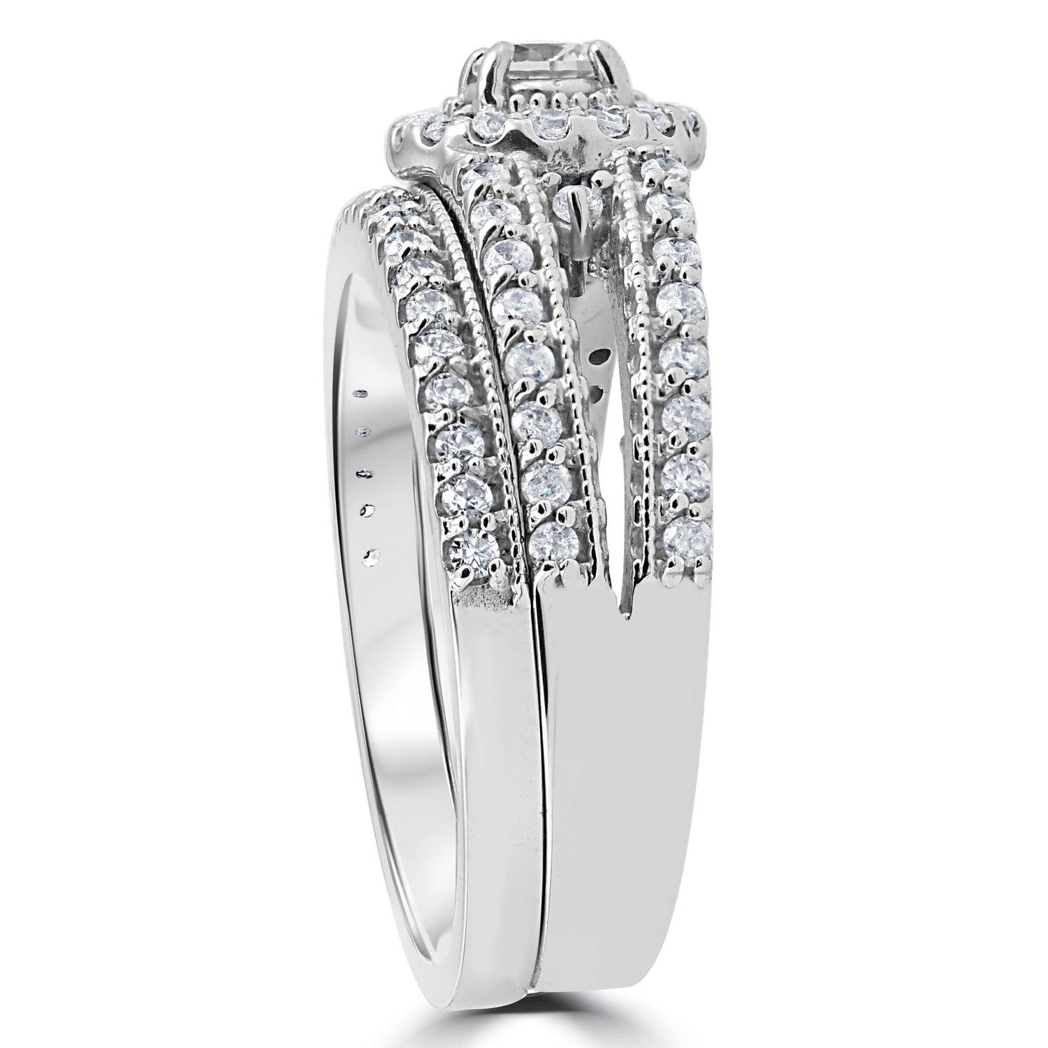 1 Carat Vintage Halo Diamond Engagement Wedding Ring Set 14K White Gold