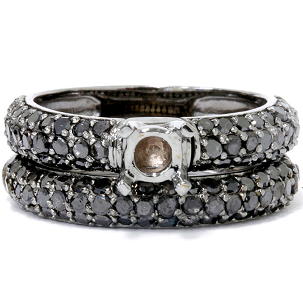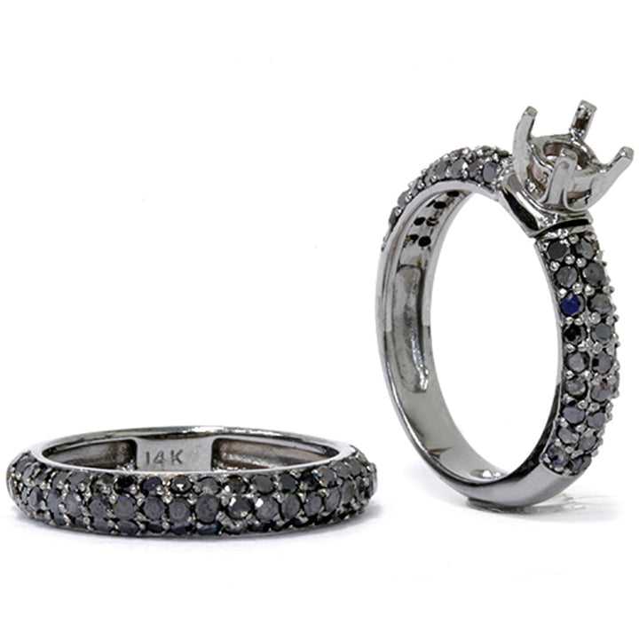2 CT Pave Black Diamond Mount Semi Mount Set 14K White Gold