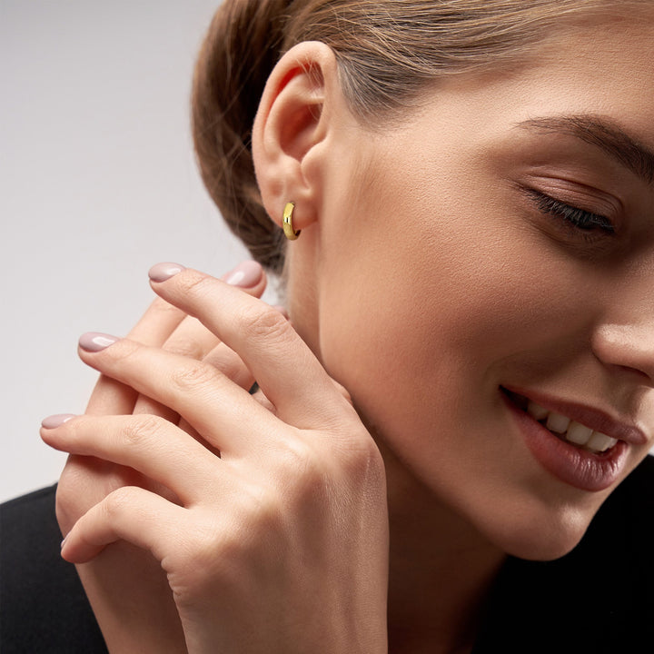 These Mimi & Max Mini Hoop Earrings in 14K Yellow Gold offer minimalist elegance with an everyday appeal. These petite huggie hoops crafted in polished 14K yellow gold feature a continuous hoop design, delivering comfort and versatility. Ideal as a subtle yet fashionable addition to your jewelry collection, embodying simplicity and modern sophistication.