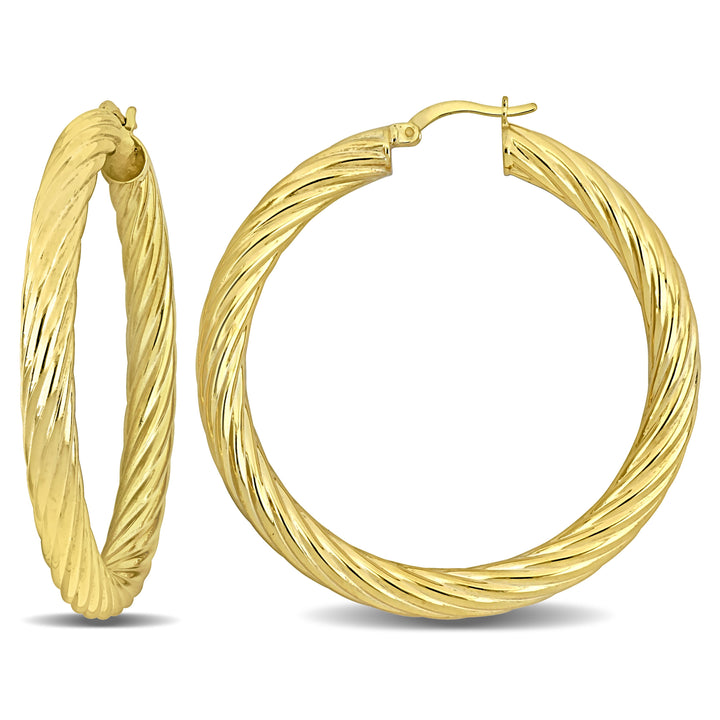 Mimi & Max 50x5mm Twist Hoop Earrings in Yellow Plated Silver