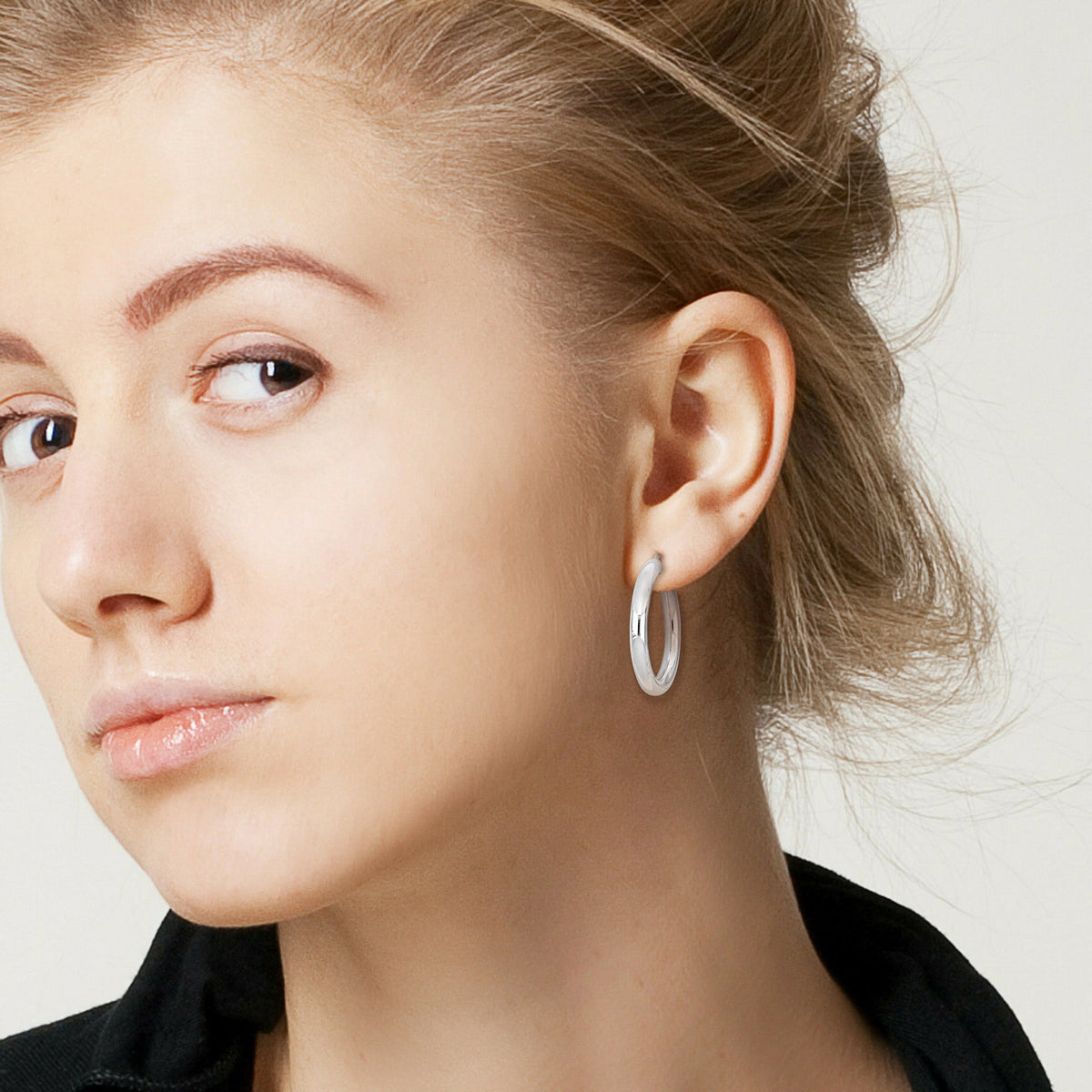 The Mimi & Max 40mm Hoop Earrings in Sterling Silver are an ideal addition to any jewelry collection. With their gleaming silver hue and a refined 5mm width, these hoop earrings provide a timeless charm that effortlessly enhances both everyday outfits and special occasions. The minimalist design ensures that these earrings blend seamlessly with your individual style, offering versatility and sophistication. Designed for comfort, they provide a lightweight feel that carries you from day to night with ease.