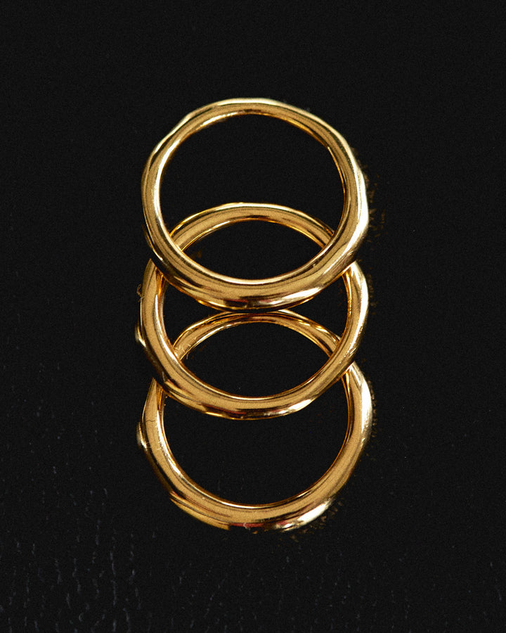 Made from brass with gold or silver plating. Each band measures 3mm x 2.4mm. Available in US sizes 4–8. 100% nickel-free and cadmium-free. Packaged in Luv Aj branded gift boxes.