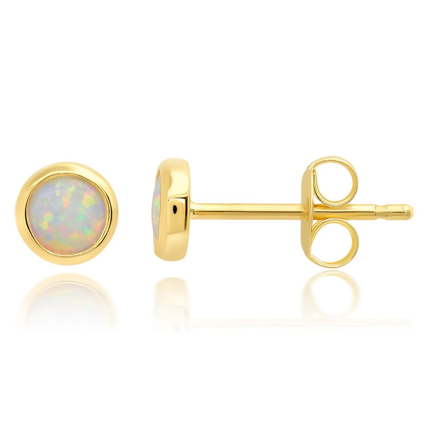 14K Yellow Gold Bezel Set Round 4MM Created Opal Stud Earrings