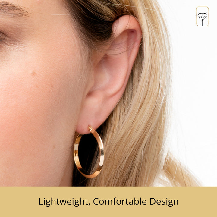 Solid 14K Yellow Gold 20MM Edge Hoop Earrings