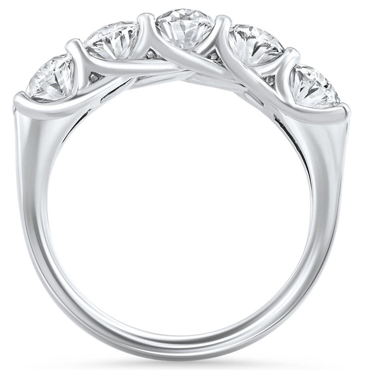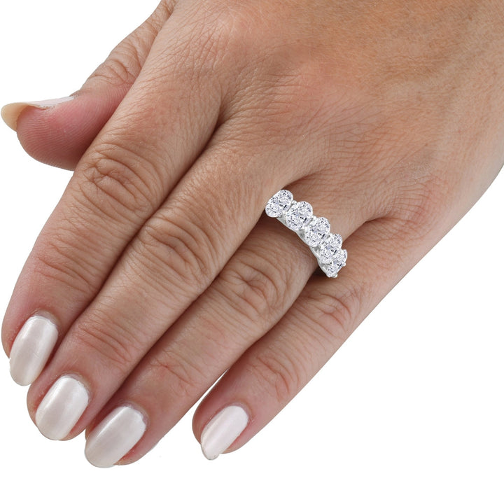 This 3Ct Oval Shape Diamond Five Stone Wedding Ring in 14k Gold Lab Grown by Pompeii3 features five prong-set oval lab-grown diamonds in a polished 14k gold mounting. This stunning wedding ring is perfect to stack with an engagement ring or wear on its own as a statement piece. With its modern and elegant design, it makes a lasting impression.