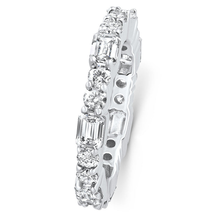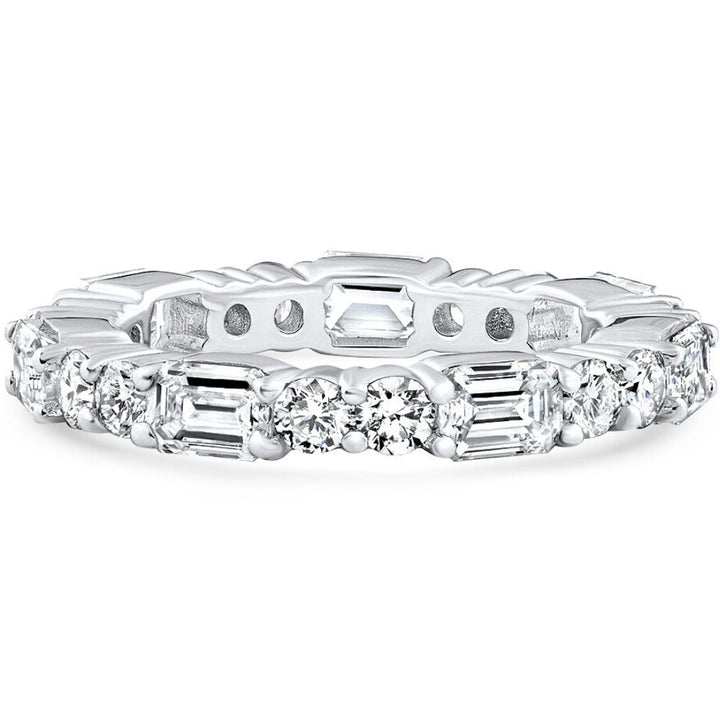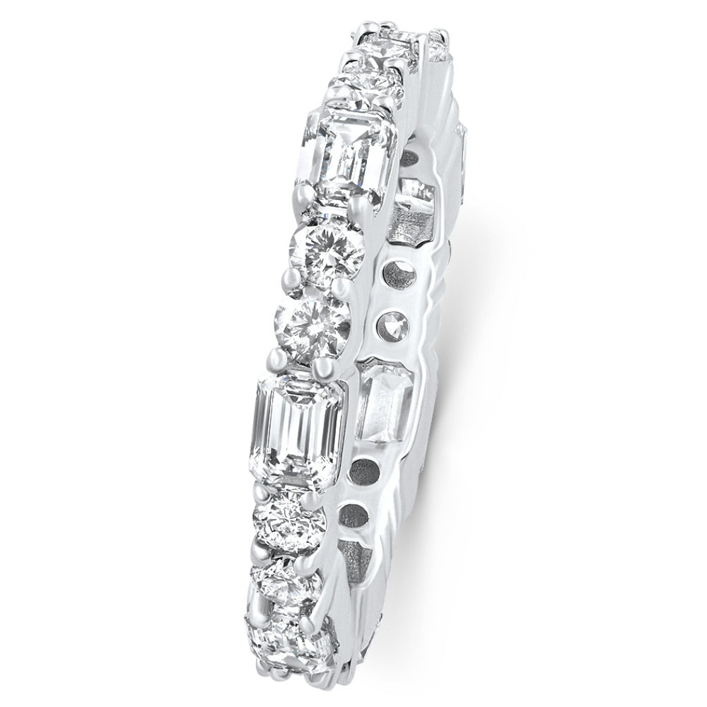 This 3Ct Emerald & Round Cut Diamond Eternity Wedding Ring by Pompeii3 is a luminous blend of modern sophistication and timeless beauty. Featuring alternating emerald and round lab-grown diamonds, this piece is ideal for stacking or worn alone as a symbol of everlasting love.