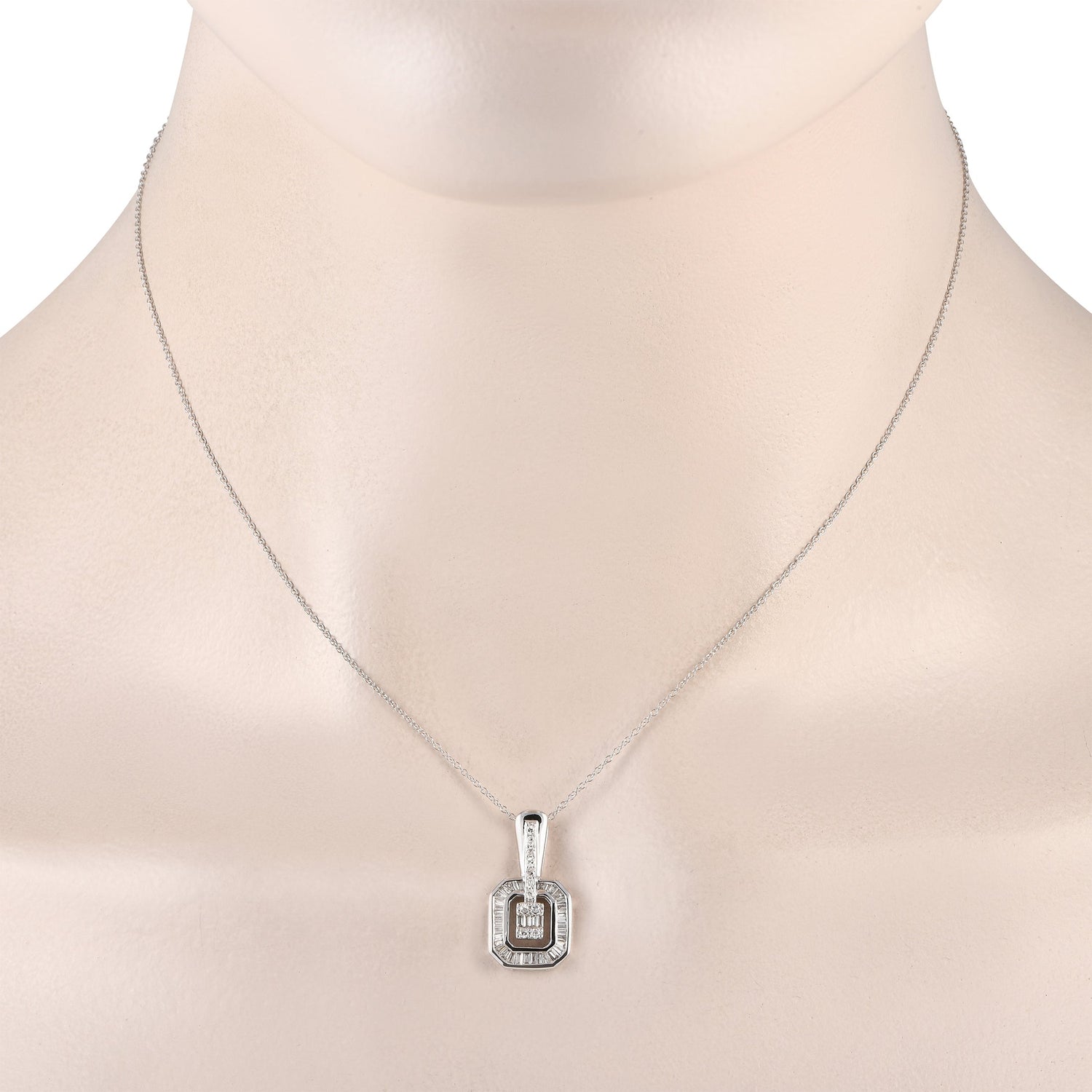 Crafted in 14K white gold with 0.35ct of diamonds. Pendant dimensions: Octagonal shape, cluster center. Necklace length: 18'.