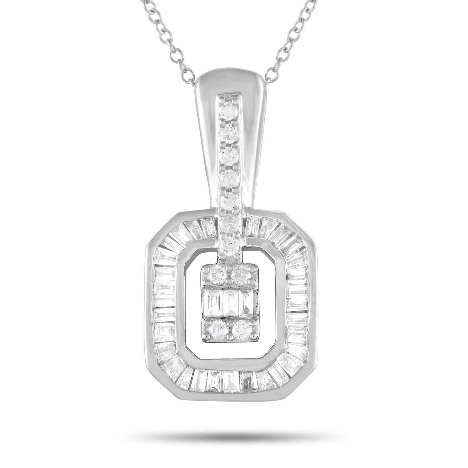 The LB Exclusive 14K White Gold 0.35ct Diamond Pendant Necklace features an elegant geometric design with a cluster of diamonds set in a polished white gold setting. The pendant’s clean lines and diamond accents combine to create a sophisticated and timeless piece that complements any wardrobe.