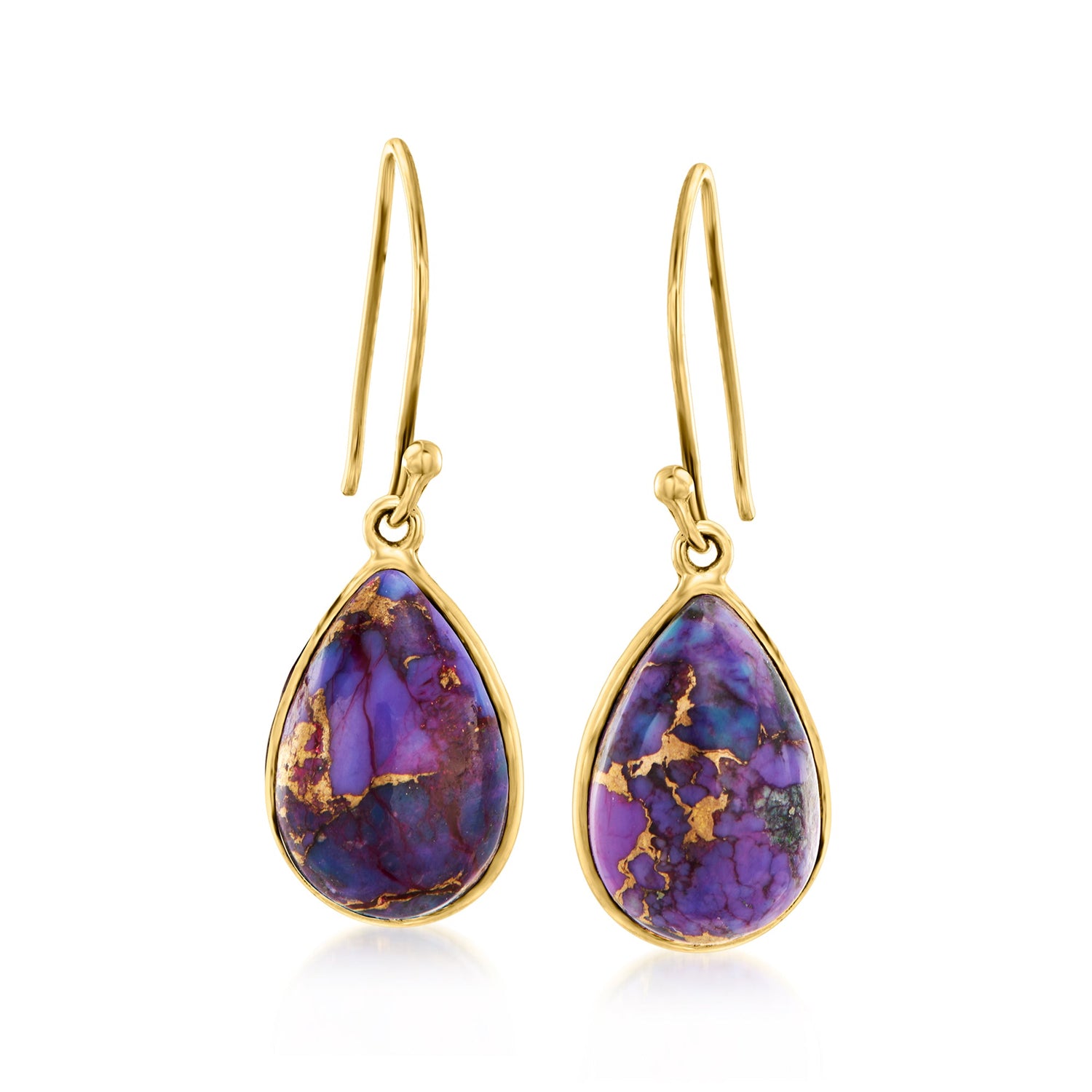 Canaria Purple Turquoise Drop Earrings in 10kt Yellow Gold