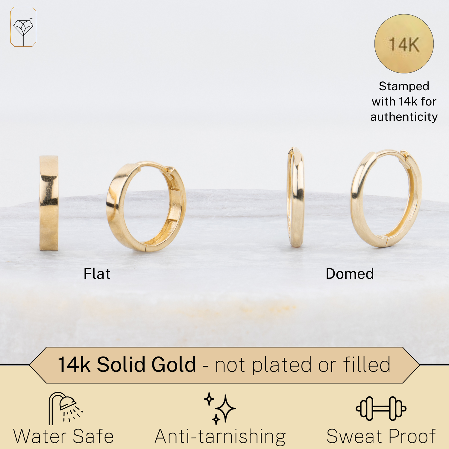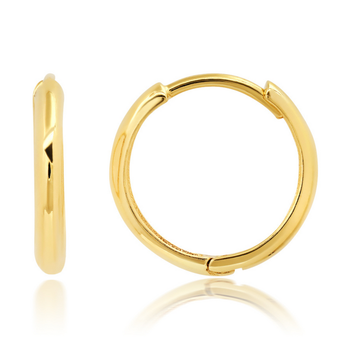 14K Yellow Gold 14mm Domed Style Huggie Hoop Earrings with Hidden Post Hinged Closure