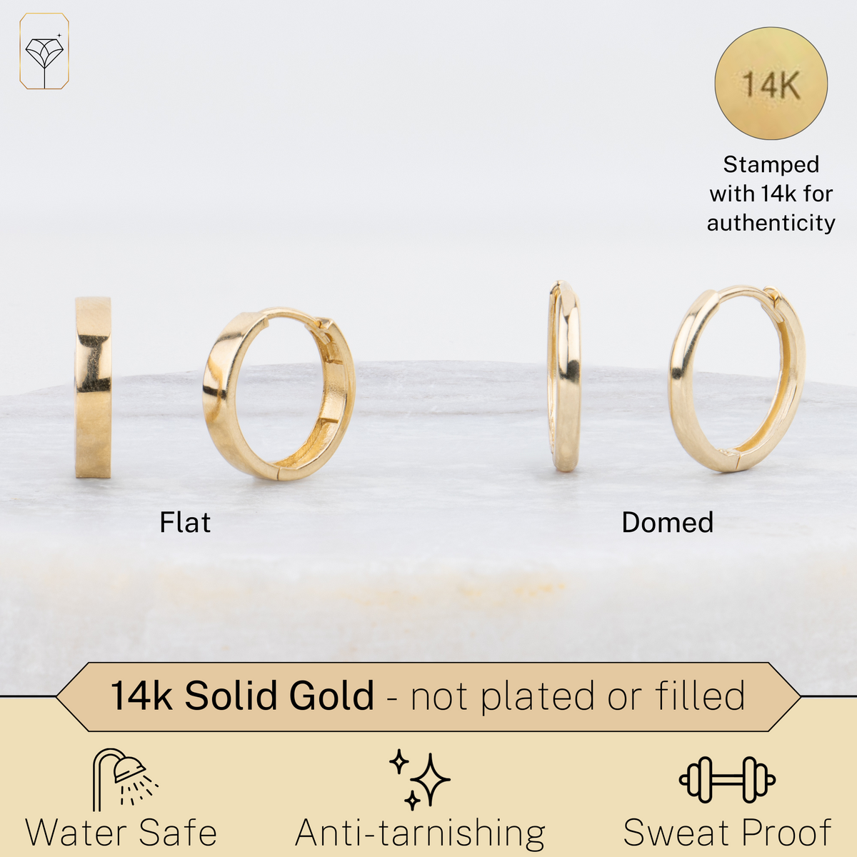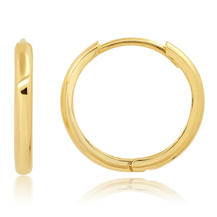 14K Yellow Gold 16mm Domed Style Huggie Hoop Earrings with Hidden Post Hinged Closure