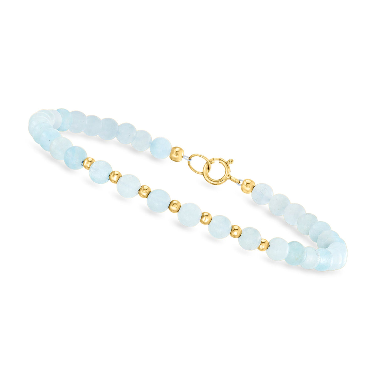 Crafted in 10kt yellow gold with 18.00ct aquamarine beads. Bracelet length: 7'.