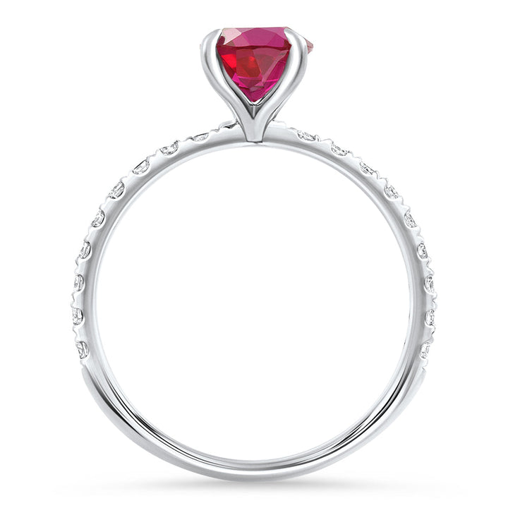 This VS 1Ct Round Ruby and Diamond Ring by Pompeii3 glows with vibrant color and sparkle. Featuring a radiant ruby complemented by sparkling round diamonds, this exquisite ring is set in polished 10k gold for a luxurious, classic finish.