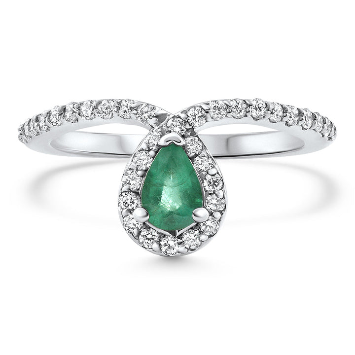 This 3/4Ct Pear Shape Emerald Diamond Ring by Pompeii3 is a bold and vibrant design featuring a glowing emerald center. Surrounded by shimmering lab-grown diamonds, this piece beautifully blends classic sophistication with modern brilliance.
