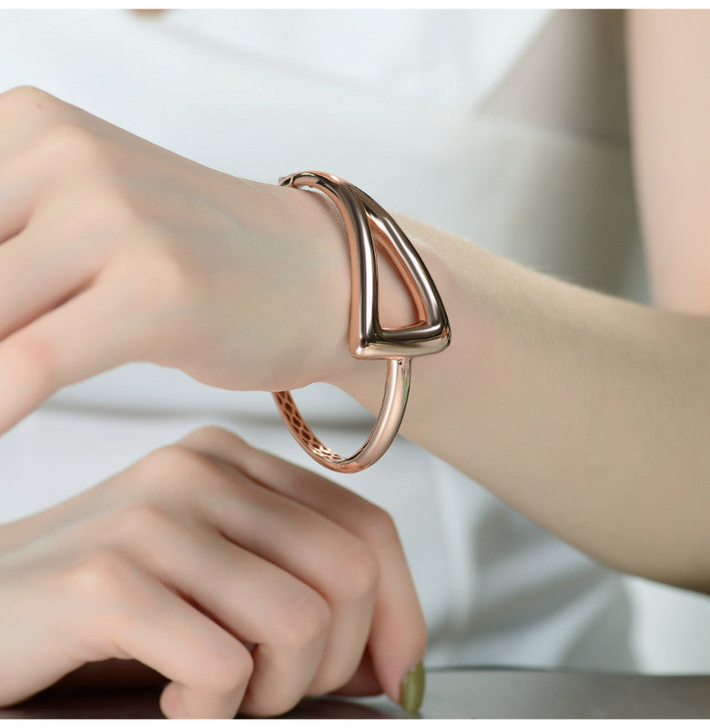 Sterling Silver 18k Rose Gold Plated Triangle Geometric Bangle Bracelet