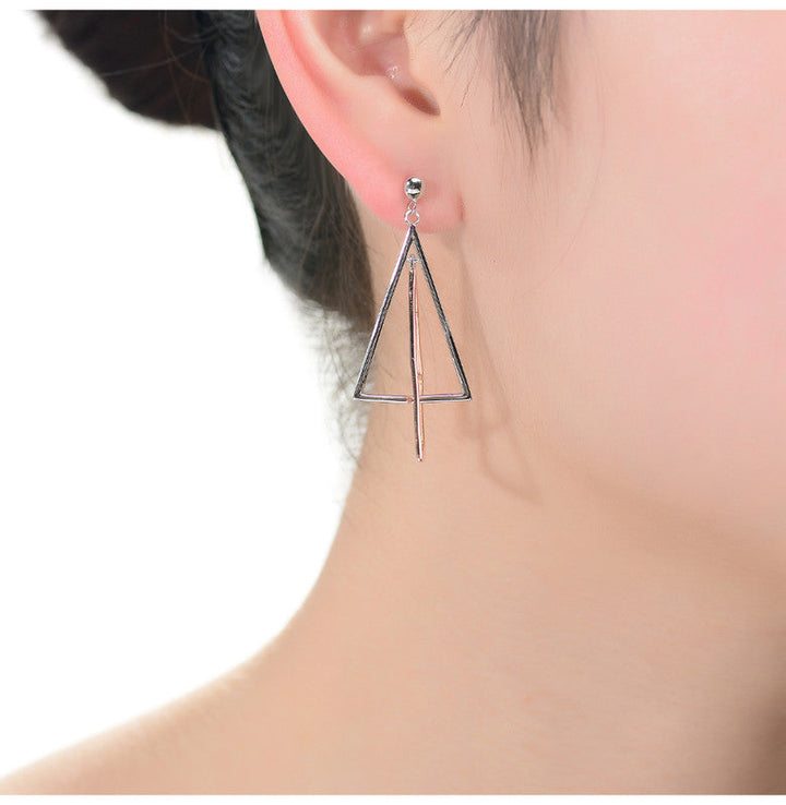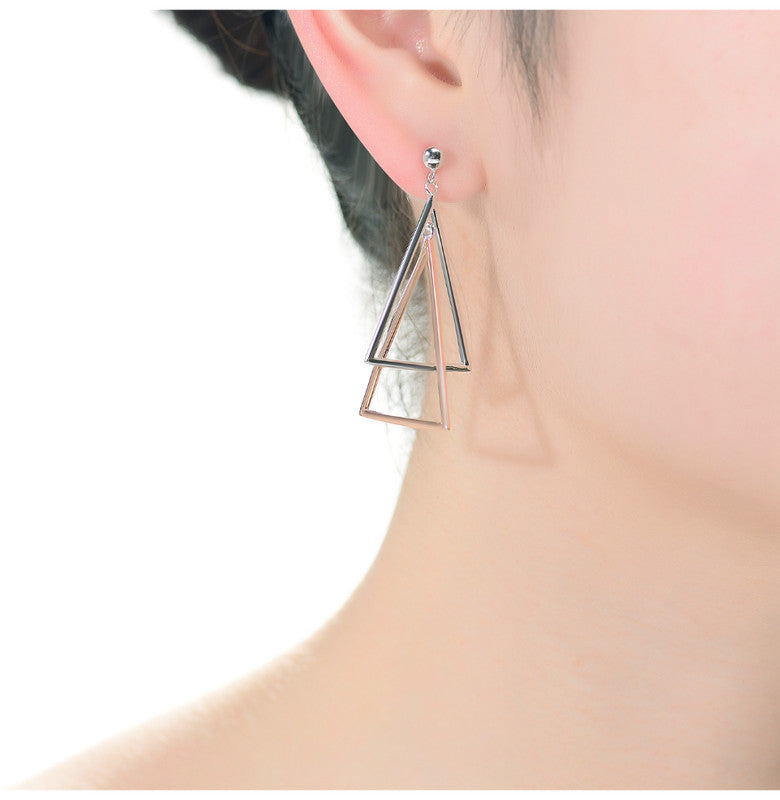 Sterling Silver Two-Tone Triangle Dangling Earrings