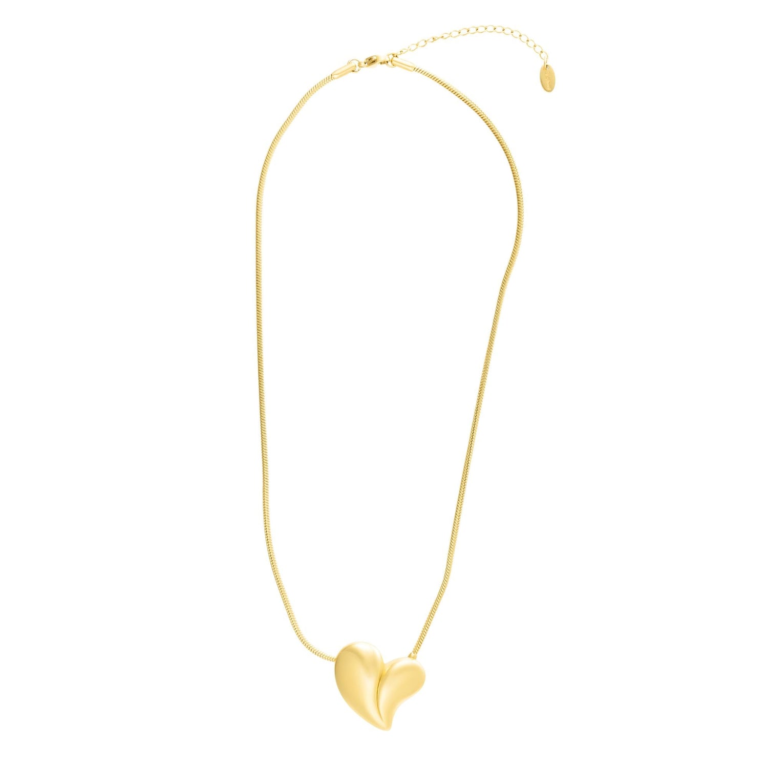 Crafted in tarnish-resistant stainless steel, plated with 18k yellow gold, featuring an oversized heart pendant (1-inch width). Adjustable length (16-19 inches) with lobster clasp.